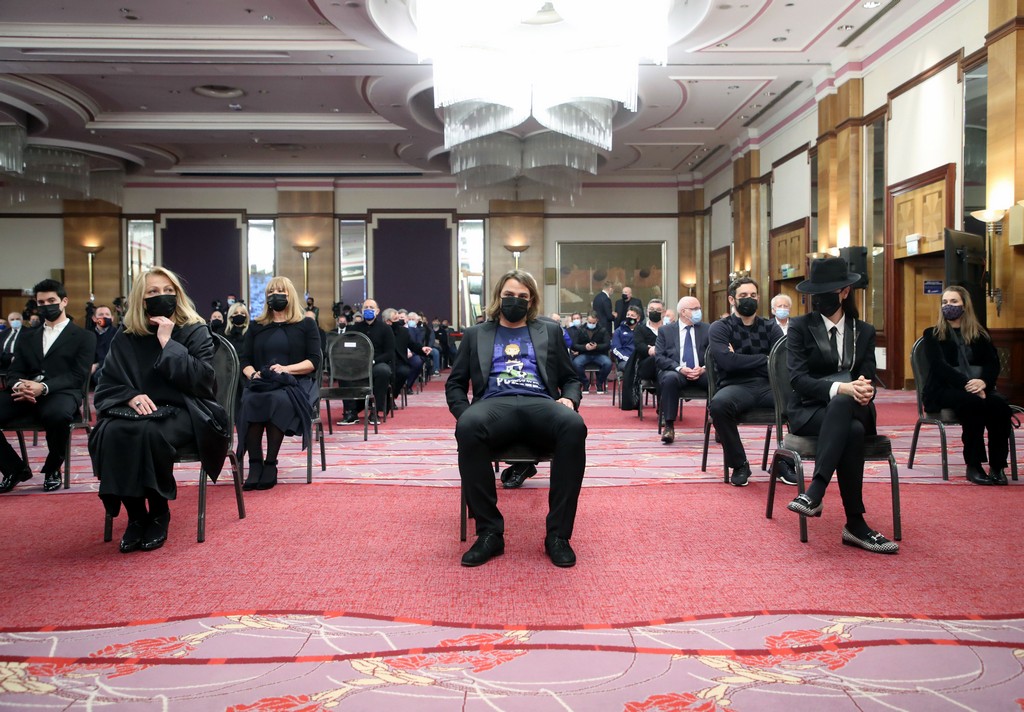 Zagreb, 5.3.2021.- Komemoracija igraèu i treneru GNK Dinamo Zlatku Kranjèaru odrana je u zagrebaèkom hotelu Westin. Na slici supruga Elvira Kranèar, sin Niko Kranjèar i Zrinka Cviteiæ.