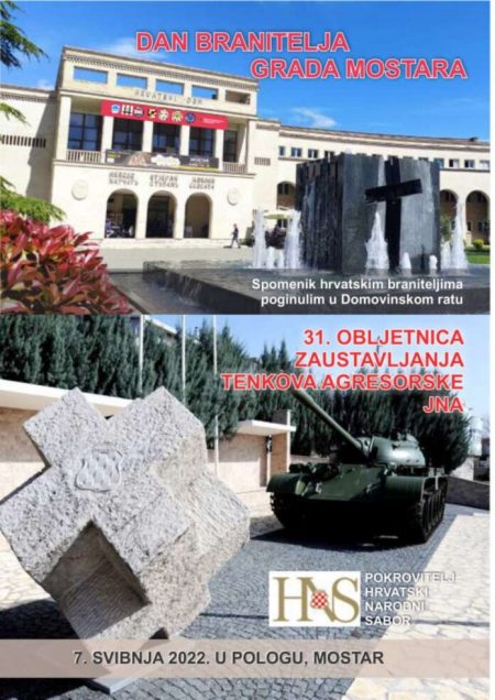 Svečano obilježavanje 31. godišnjice zaustavljanja tenkova JNA i Dana branitelja Grada Mostara održat će se 7. svibnja u Mostaru i Pologu, priopćila je mostarska HVIDRA.