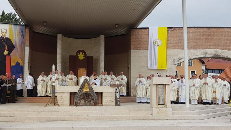 Na kraju mise nazočnima se obratio i predsjednik HBK-a nadbiskup Puljić. „Okupljeni danas u Nacionalnom Marijinom svetištu pitamo se što bi bila Crkva bez Marije? Bez Marije nade čovječanstva, bez Marije zore naše svagdanje ljudi bi tonuli u gluhoj noći. Marija nije izmišljena utjeha već stvarno darovana nada. Ona je zvijezda naše povijesti i ufanje naše budućnosti“, rekao je, među ostalim, nadbiskup Puljić zahvalivši biskupu Bogdanu uime članova HBK-a i drugih nazočnih biskupa na pozivu da sudjeluju u zahvalnom hodočašću.