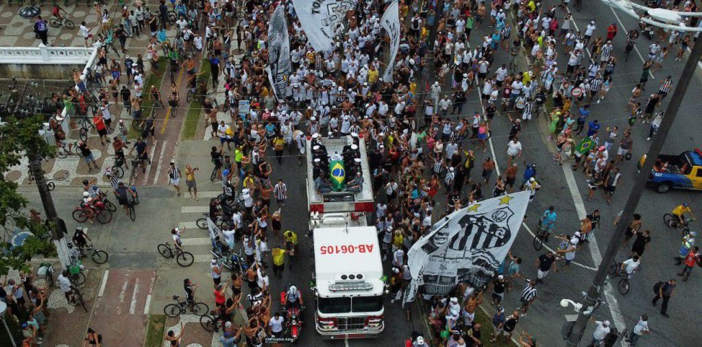 Procesija je krenula sa stadiona Urbano Caldeira, doma Peleovog bivšeg kluba Santosa, a njegov je lijes potom krenuo ulicama grada Santosa, pored kuće u kojoj živi njegova 100-godišnja majka, Celeste Arantes, koja pati od kognitivnog oštećenja i nije svjesna smrti svog sina.