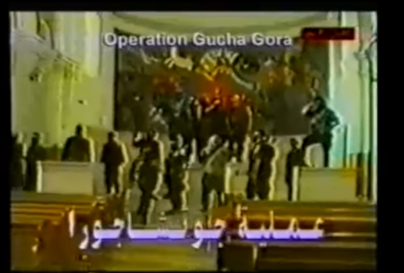 Kako se vidi na snimku, vojnici bošnjačke vojske, Armije BiH, ušli su u crkvu u Gučoj Gori, pucali u unutrašnjosti crkve te s oltara “proučili ezan”. Vidljivo je kako su neki od bošnjačkih vojnika zapravo mudžahedini, odnosno jezgro onog što će kasnije biti poznato kao Al Qaeda i ISIL.