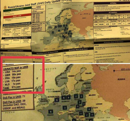 Jedan dokument s oznakom “strogo povjerljivo” donosi informaciju o “statusu konflikta na 1. ožujka”. Tog dana su ukrajinski dužnosnici bili u američkoj vojnoj bazi u njemačkom Weisbadenu, gdje su sudjelovali u vježbi vojnih igara. Dan kasnije su zapovjednik Združenog stožera američke vojske Mark Milley i general Christopher Cavolli, vrhovni zapovjednik savezničkih snaga u Europi, također posjetili tu bazu.