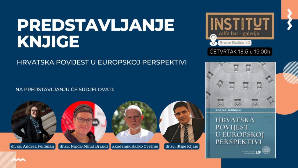 Predstavljanje knjige održat će se u Cafe galeriji Institutu 18.5. u 19 sati. Dr. sc. Andrea Feldman predstavit će svoju knjigu i razgovarati s publikom o ključnim temama koje su obuhvaćene u knjizi.