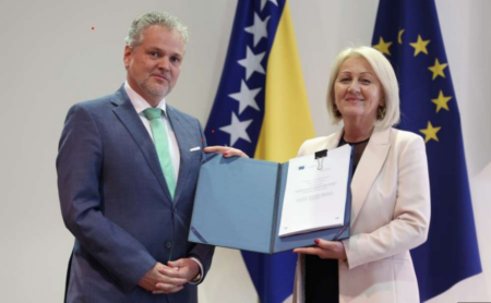 Šef Delegacije Europske unije (EU) u Bosni i Hercegovini Johann Sattler danas je u Sarajevu uručio predsjedateljici Vijeća ministara BiH Borjani Krišto Izvještaj Europske komisije o Bosni i Hercegovini za 2023. godinu nakon što je BiH dobila zeleno svjetlo za početak pregovora o članstvu u EU, ali pod određenim uvjetima.