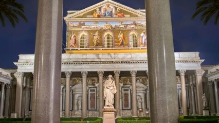 Bazilika Sv. Pavla, sagrađena je nad njegovim grobom, nedaleko od mjesta gdje su apostolu odsjekli glavu. Do danas je očuvala stari bazilikalni stil, pa je zato vrlo dojmljiva za hodočasnike i turiste. Tijekom stoljeća povećavana je, a osobita nova vrijednost u njoj su mozaičke slike. U bazilici se nalaze i slike svih papa u povijesnom redu. Podigao ju je papa Siricije (384. – 399.).