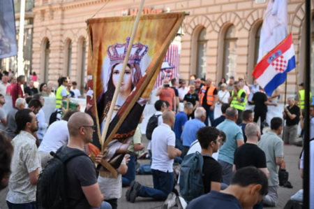 Kao i svake prve subote u mjesecu, muškarci su se okupili na Trgu bana Josipa Jelačića u Zagrebu kako bi zajednički molili krunicu. Sa sobom su donijeli transparente, a okupljanje osigurava policija. Molitva je započela oko 8:30 sati.