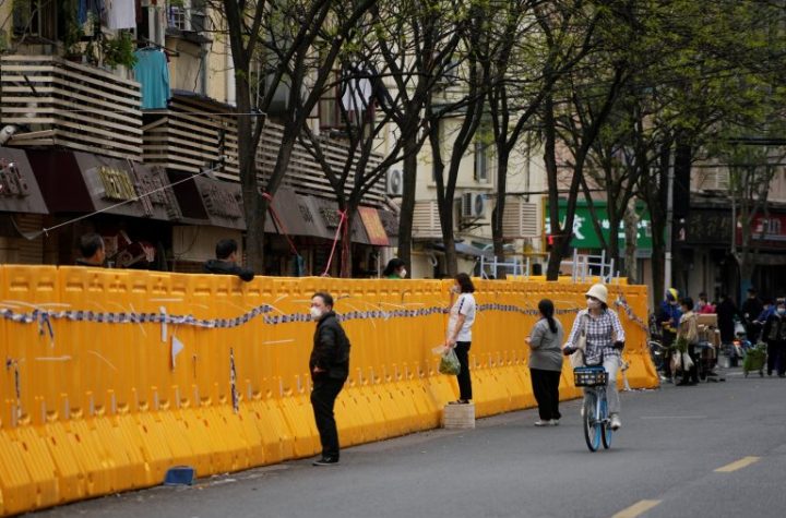 Šangajske vlasti u Kini suočene s izbijanjem covida-19 podigle su mrežaste ograde ispred...